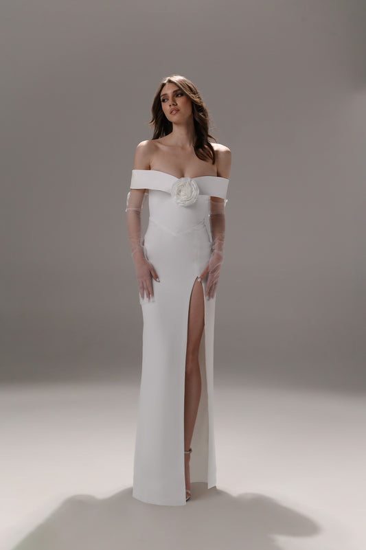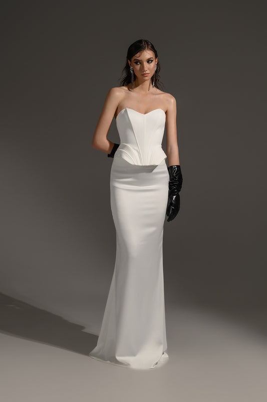 Corset alb cu decolteu adanc si fusta lunga